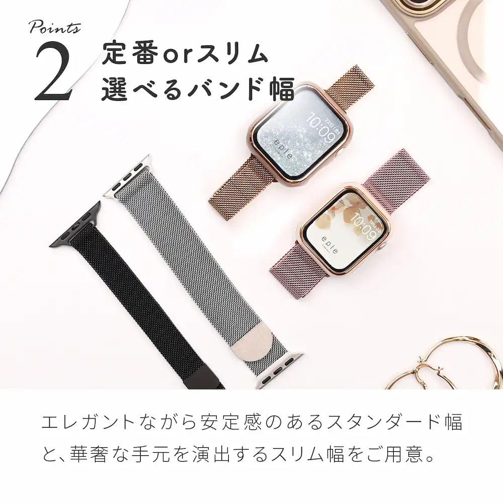 【シリーズ11・SE3対応】ステンレス メッシュ アップルウォッチ バンド マグネット apple watch ベルト 女性 レディース 40 41 42 44 45 46 49 mm 10 9 8 7 6 5 4 3 おしゃれ 細め | エレガントループ