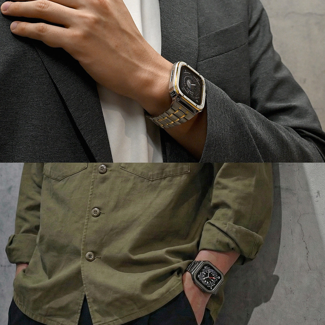 【SE3対応】【風格を纏う大人のハイブリッド】ソリッドクロノス|ステンレス・TPU製 アップルウォッチバンド