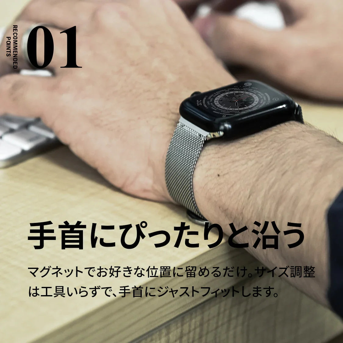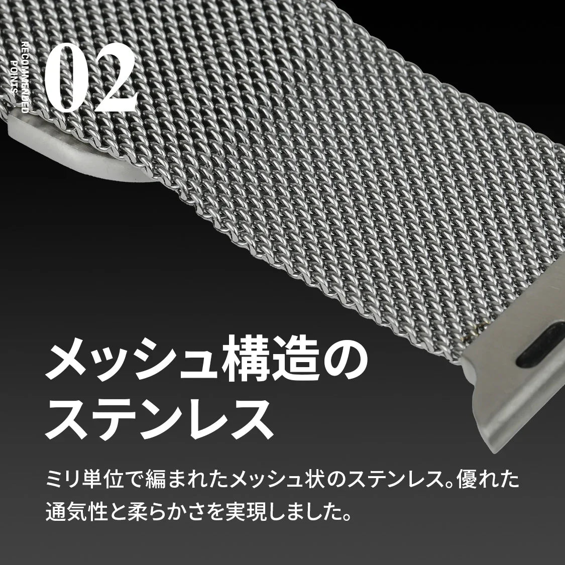 【シリーズ11・SE3対応】快適 通気性 のある カジュアル スタイル アップルウォッチ バンド | ステンレス メッシュ