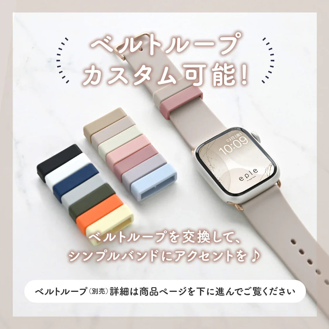 | 注意 | ※通常、ベルトループのカラーは選択したベルトと同じカラーです。カラーの異なるベルトループは別売です。 ※製造時期や個体差により商品の色味や長さが異なる場合がございます。 ※バックルおよびアダプター、ピンなどの交換はできません。 ※お使いのスマホやPC、また屋外と室内など環境や光の当たり方で色が異なって見える場合がございます。 ※Apple watch本体は付属しません。 ※商品の使用が原因で起きた時計本体や付属部品の故障、破損等は保証いたしかねますので、ご了承ください。 ※現在、金具色およびバックル形状はお選びいただけません。 |