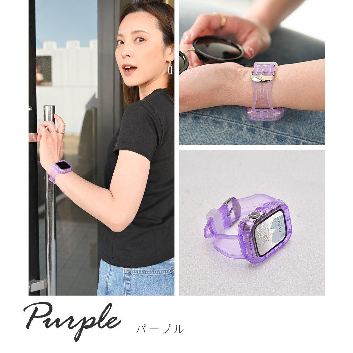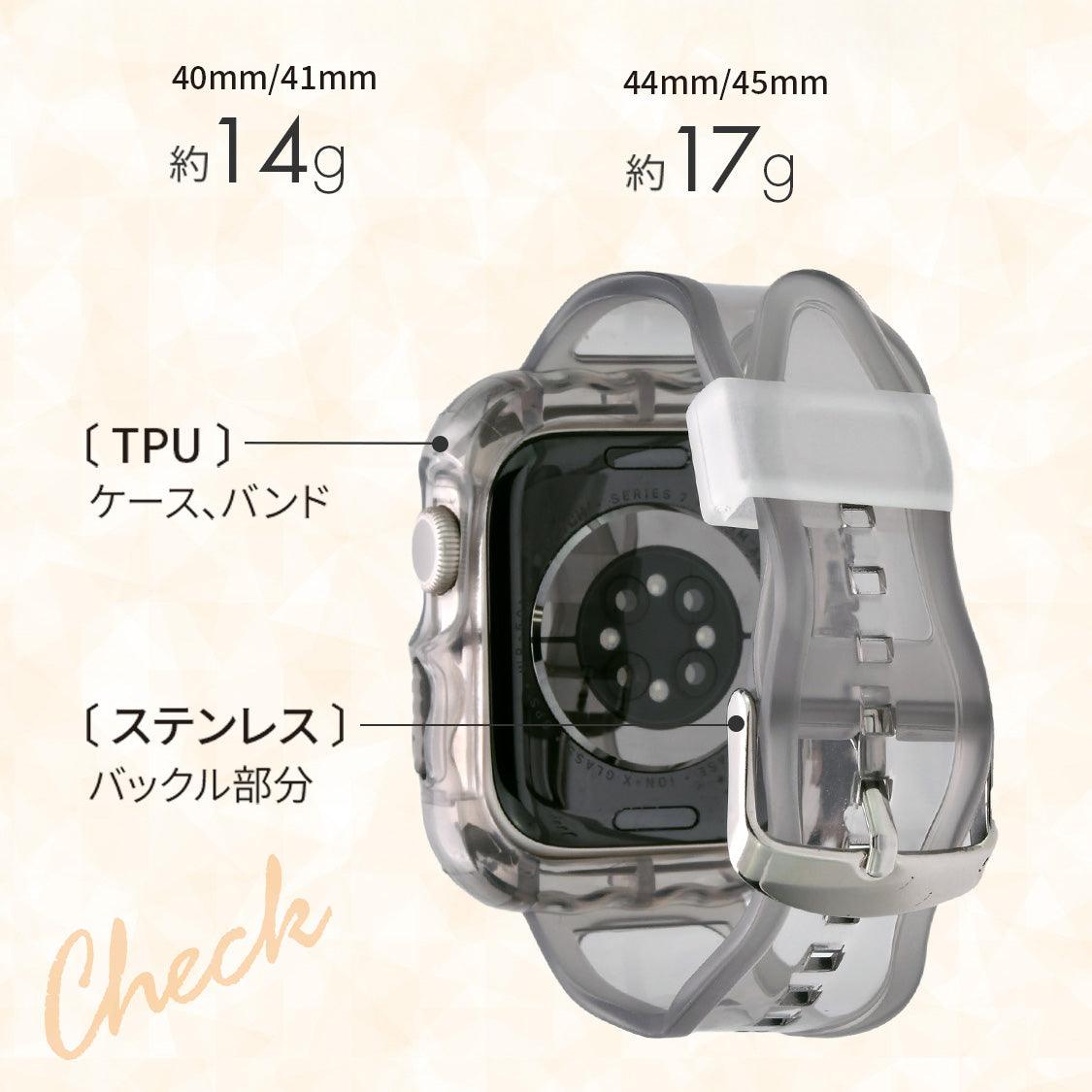 【シリーズ11・SE3対応】クリア 一体型 ウェーブ かわいい アップルウォッチ バンド ケース 透明 Apple Watch ベルト TPUバンド | ウェーブクリアバンド